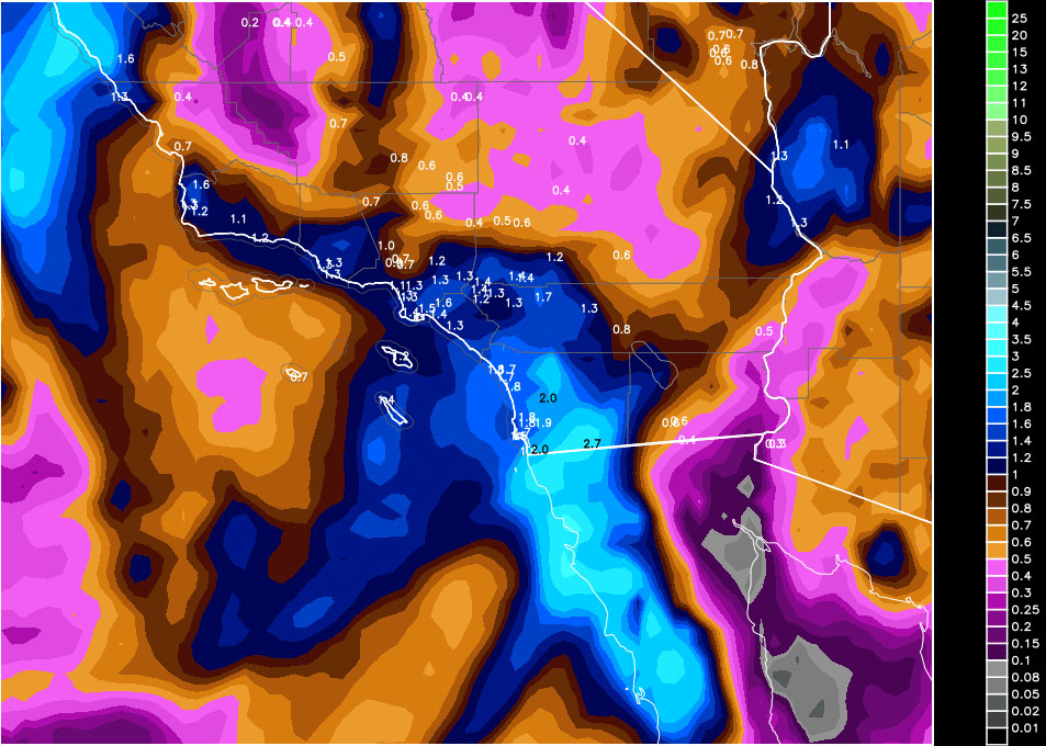 Forecast: A very strong front will come through on Tuesday. This front will be the most powerful front of this season thus far … dropping over an inch of rain in all areas in a short amount of time. These amounts will be dangerous and it will likely cause many mudslides.
