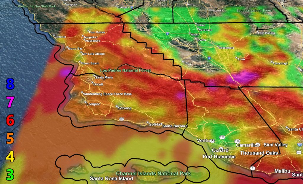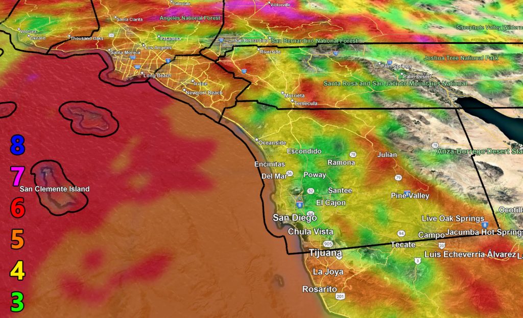 A powerful storm system that would be rated the highest category I have will enter the area later on Tuesday and go through Christmas Eve. Strong low-level flow will promote orographic lifting for flooding for the metro areas, along with strong southerly winds. Given this, parking near a tree would also be dangerous as the winds will topple trees, especially in the metro zones of Santa Barbara, Ventura, Los Angeles, Orange County, San Diego, and the Inland Empire.