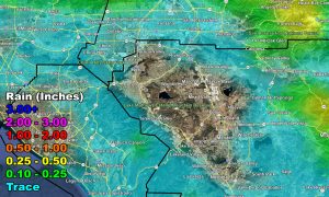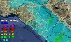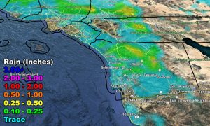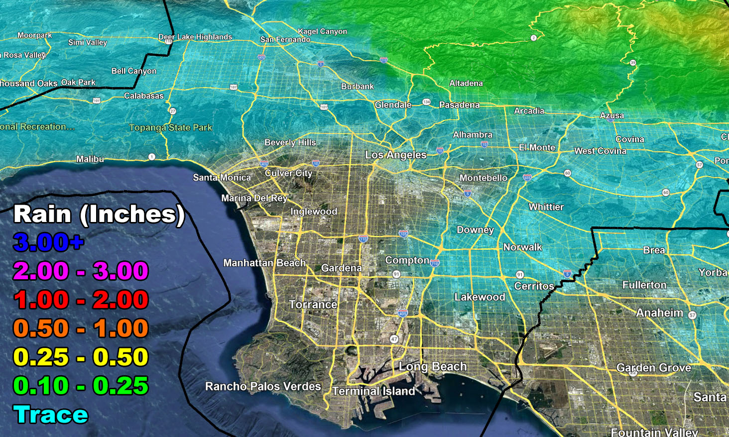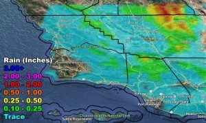 A weak system will move through Southern California later today and go into the night. This weak front is not a strong system, but it will give light rain to some metro locations. The orientation of the frontal zone and low-level wind flow does not favor areas too far from the mountain and foothill zones.