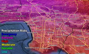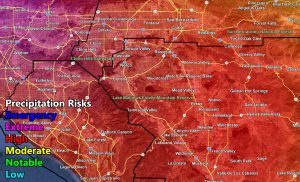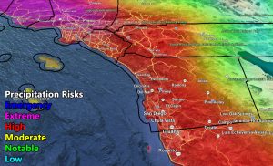 Locations: You can see from the maps that high and extreme risk exists for all metro areas south and west of the mountain and desert regions. The focus, as always with pacific storms in this type of flow, will be the populated zones.